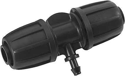 وصلة الري على شكل حرف "T" بمقاس 8/11 ملم هي مكون أساسي في أنظمة الري بالتنقيط، مصممة لتقسيم وتوزيع المياه بكفاءة عبر الأنابيب.